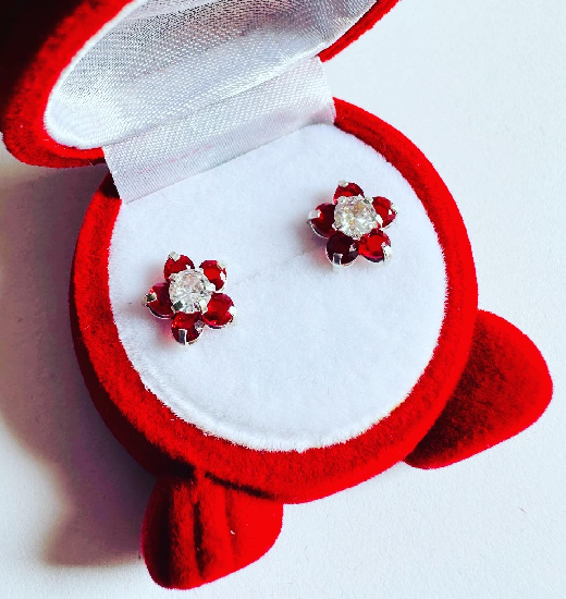 Aretes Rosetas Rojas