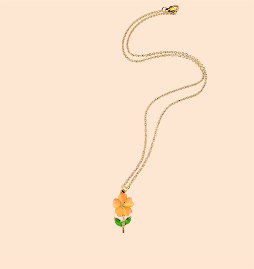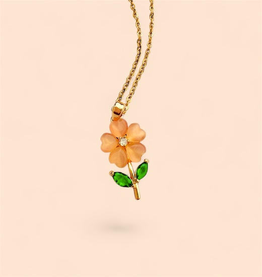 Un collar delicado inspirado en la suavidad de las flores y tonos calidos que transmiten ternura y elegancia.
