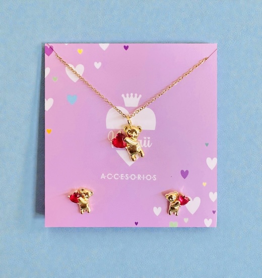 ✨Lindo regalo que incluye: Llavero de Peluche y Set de Joyas Osito🧸(joyas de acero enchapado y rodio) para niña y para adulto.